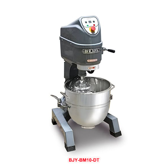 Máy trộn bột Berjaya BJY-BM10-DT (Điều khiển kỹ thuật số & Hẹn giờ) là dòng máy trộn bột công nghiệp (Planetary Mixer) dung tích lớn (10 lít) đến từ thương hiệu nổi tiếng của Malaysia. Berjaya BJY-BM10-DT là dụng cụ chuyên dụng để trộn, nhào thực phẩm và là thiết bị không thể thiếu trong căn bếp của người làm bánh.